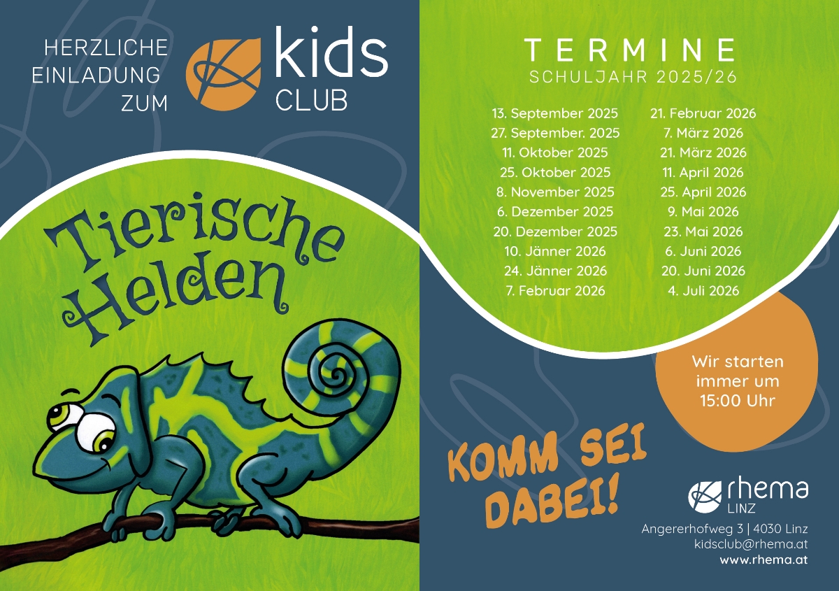 Wir laden alle Kinder in der Volksschule herzlich zum KidsClub ein! Wir treffen uns alle zwei Wochen von 15:00 - 17:30 Uhr. Es gibt immer eine Menge Spaß, tolle Geschichten (aus der Bibel), coole Spiele, Workshops und noch vieles mehr.